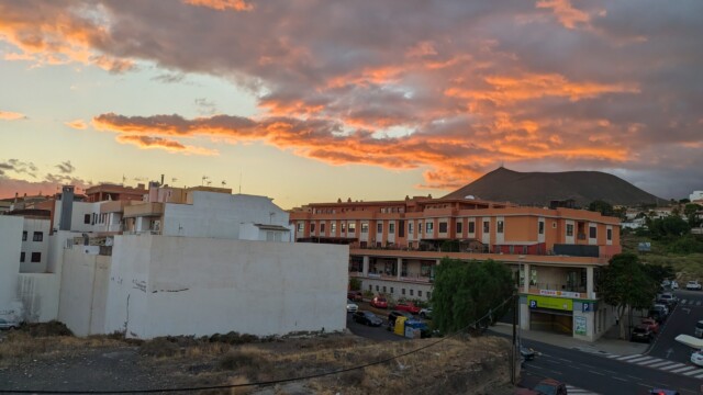 Dirás “pero eso pasa en todas partes”, y es cierto, pero en Tenerife las condiciones naturales y geográficas son especialmente propicias para que este efecto se intensifique. La atmósfera de la isla suele contener finas partículas de polvo en suspensión, sobre todo cuando sopla la calima proveniente del Sahara, que amplifican la dispersión de la luz, realzando los tonos rojos y anaranjados del atardecer.